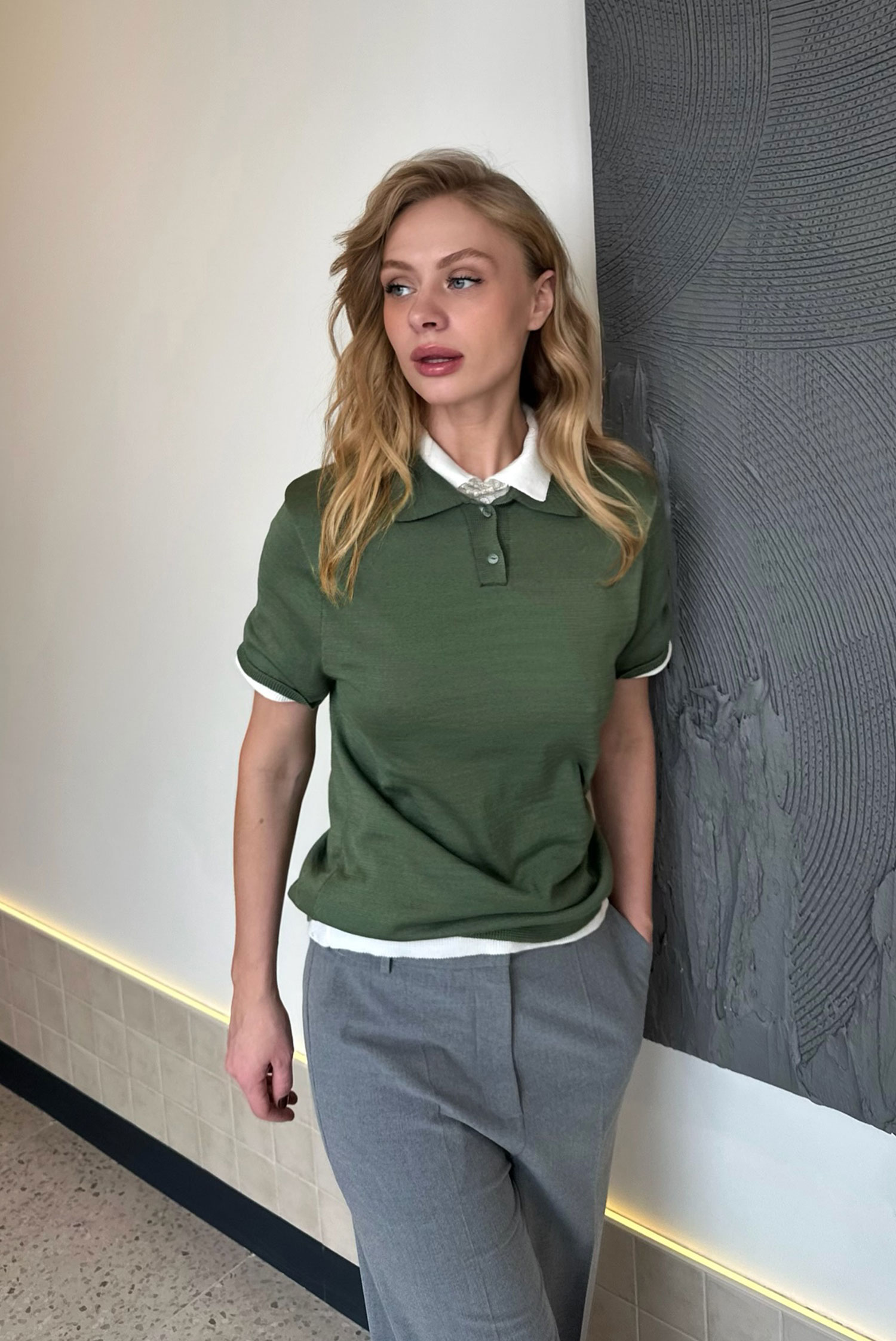 Футболка-поло вязаная LIGHT GREEN