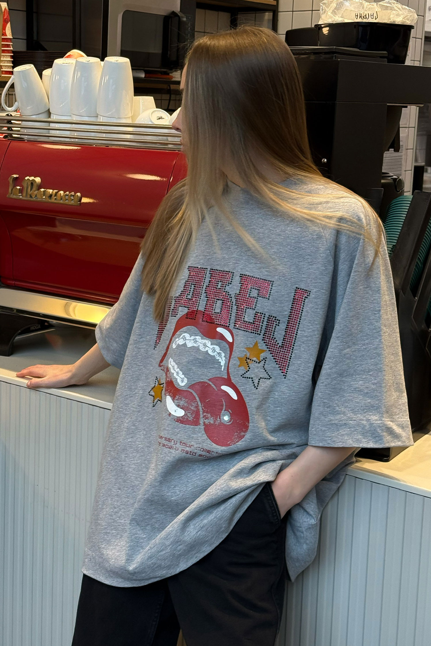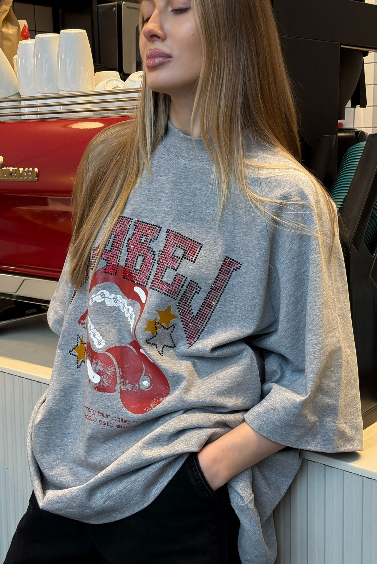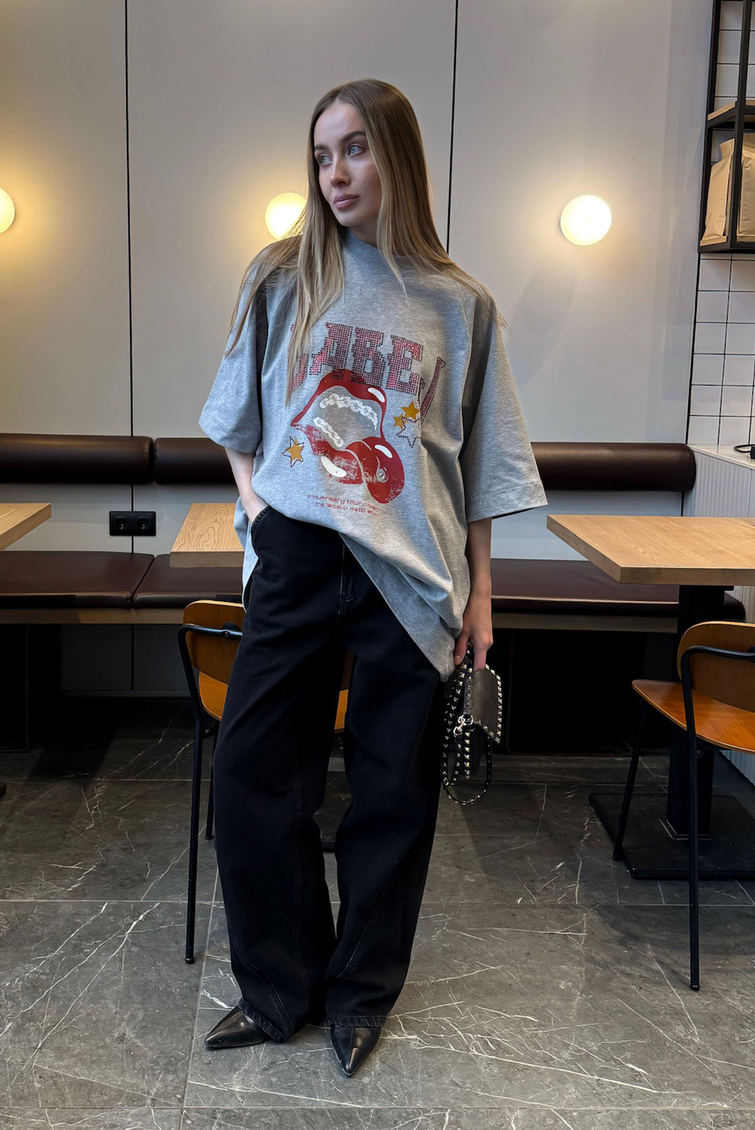 Футболка со стразами (серая)