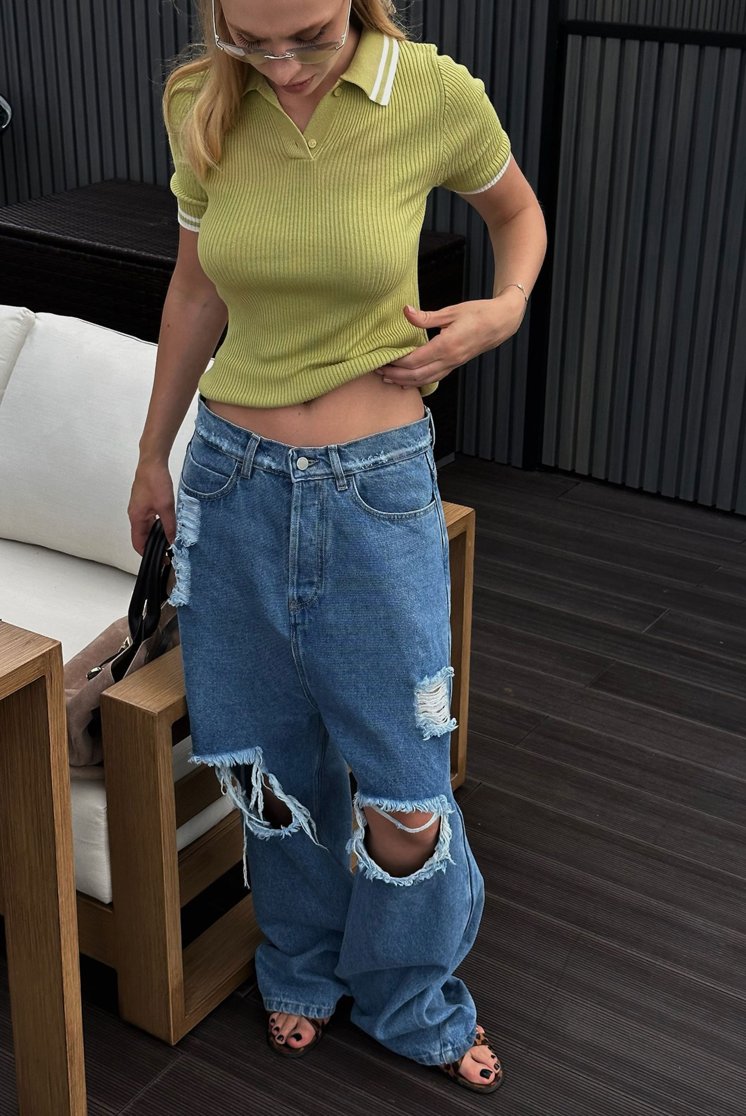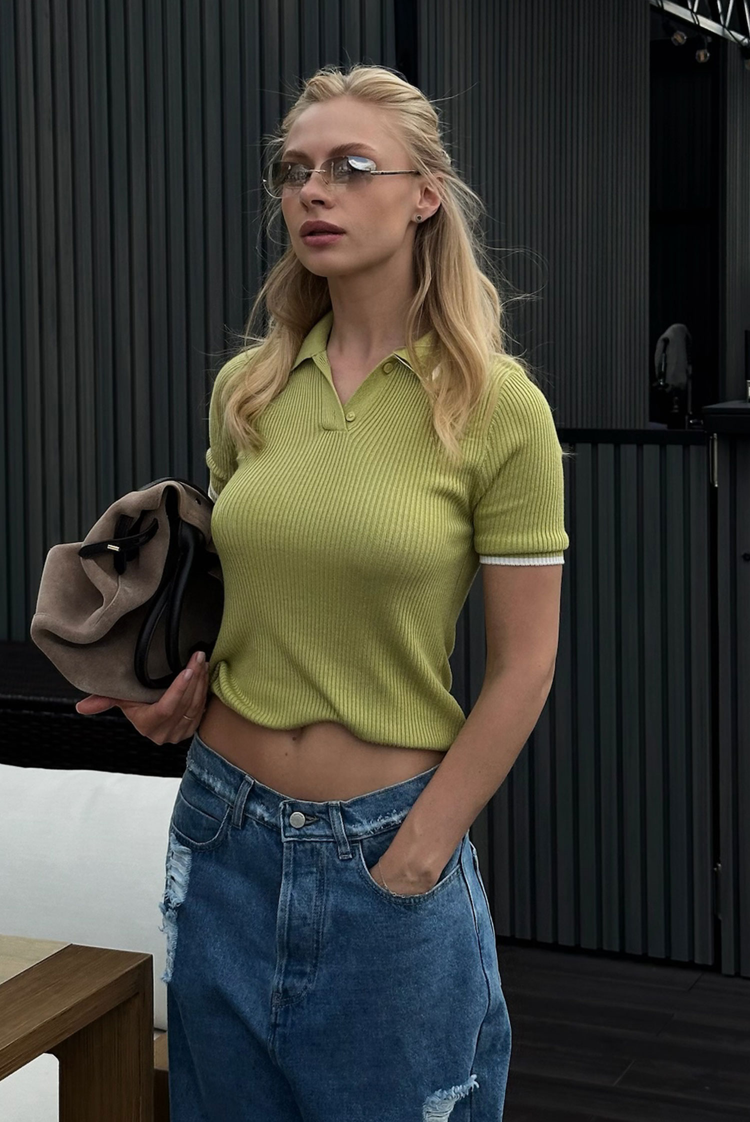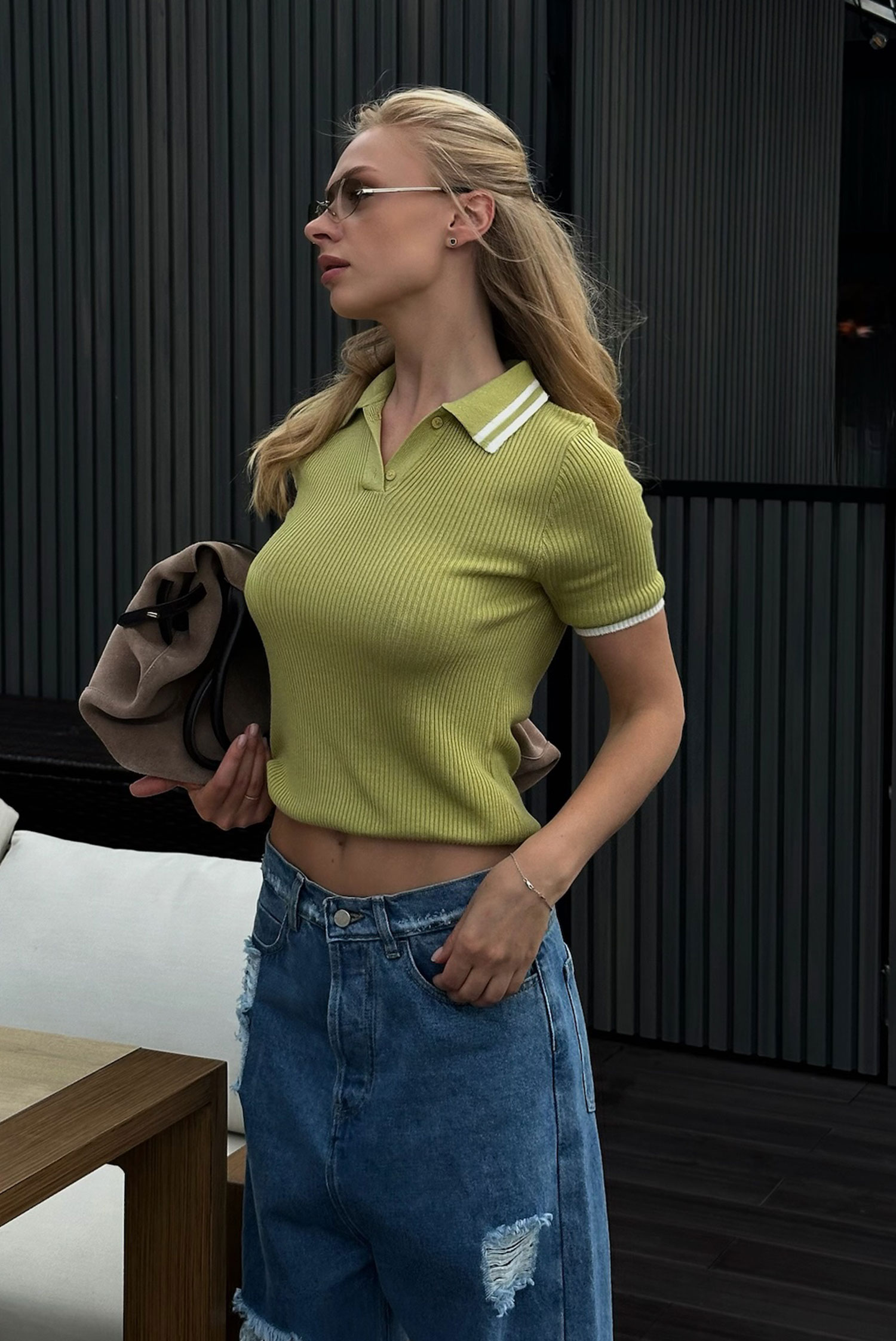 Футболка поло вязаная LIGHT GREEN
