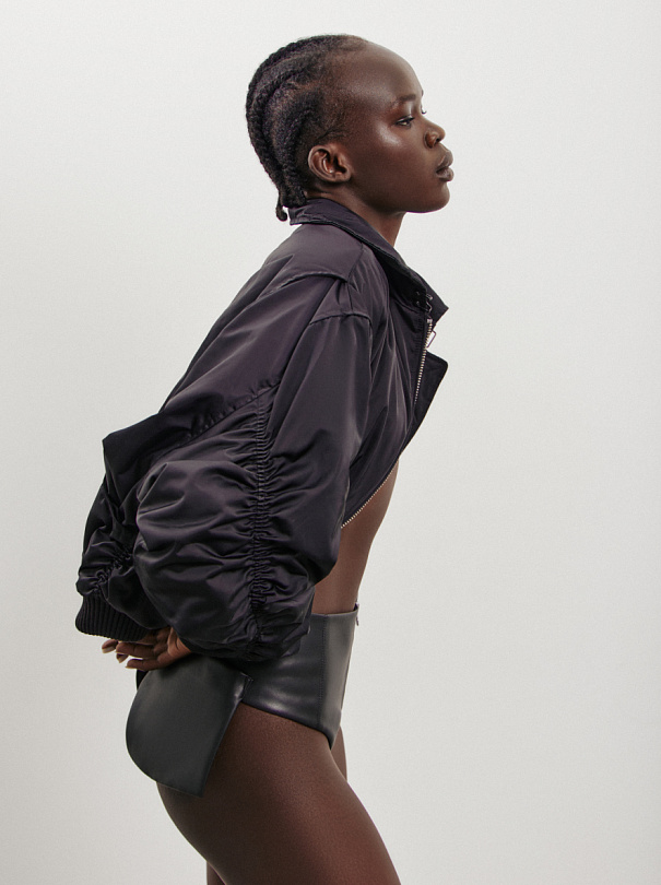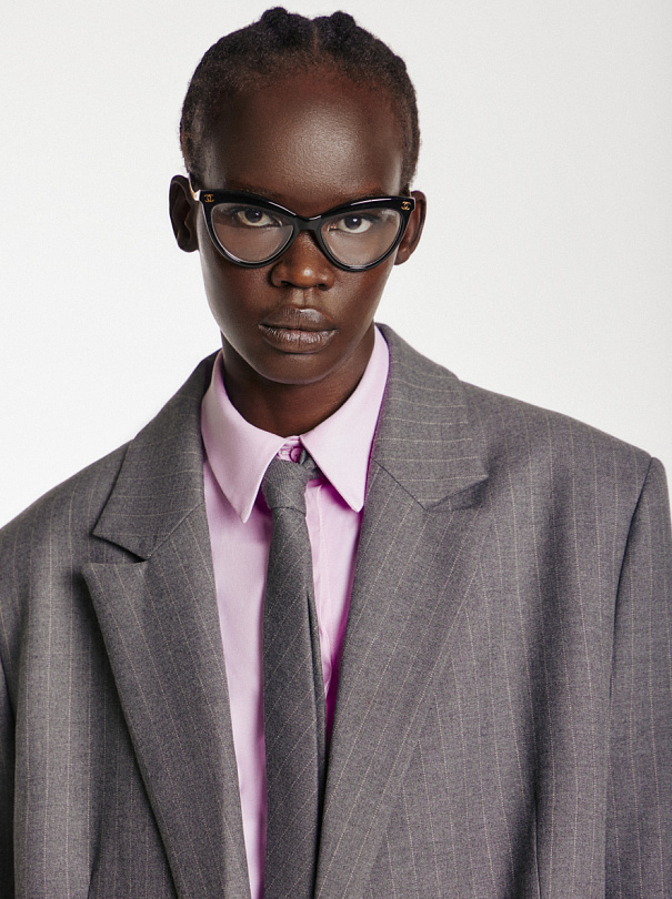 В весенней коллекции мы расширили костюмную группу. Представили ее в двух цветах в полоску: чёрном и сером. Тонкая полоска в ткани дает возможность носить все изделия не только в классических образах.